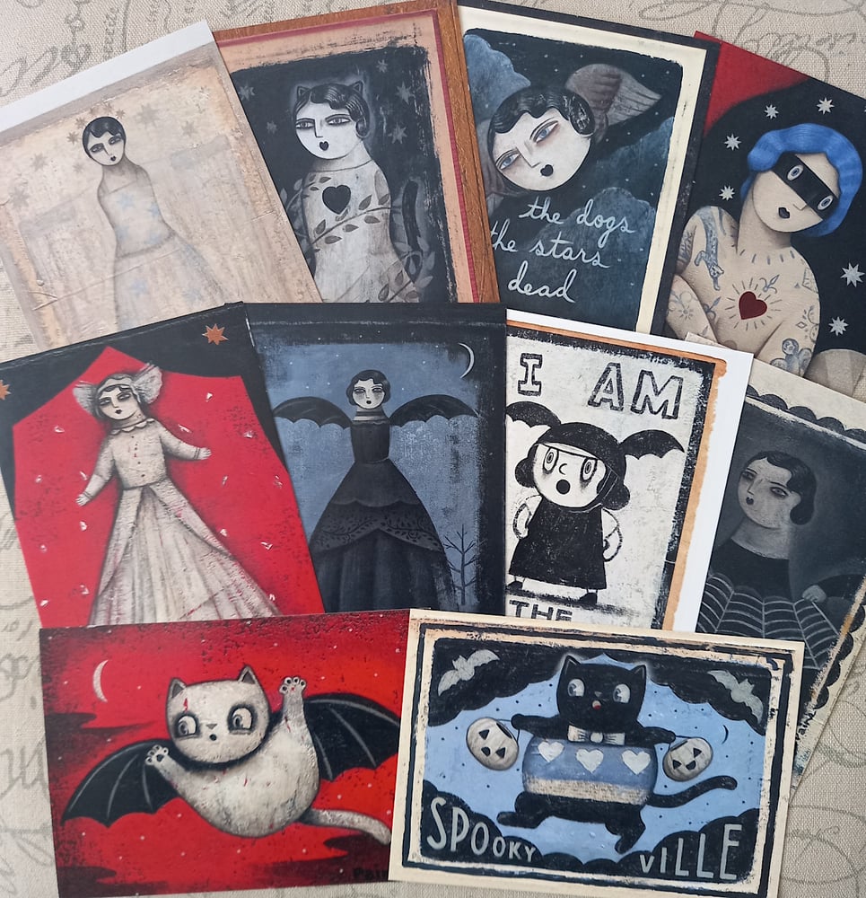 A collection of 10 Goth postcards - 10 postcards, each postcard featuring a different design (please see images for the 10 designs in this set). Unfortunately, cards/designs can't be swapped or changed with multiples or designs in other sets.
